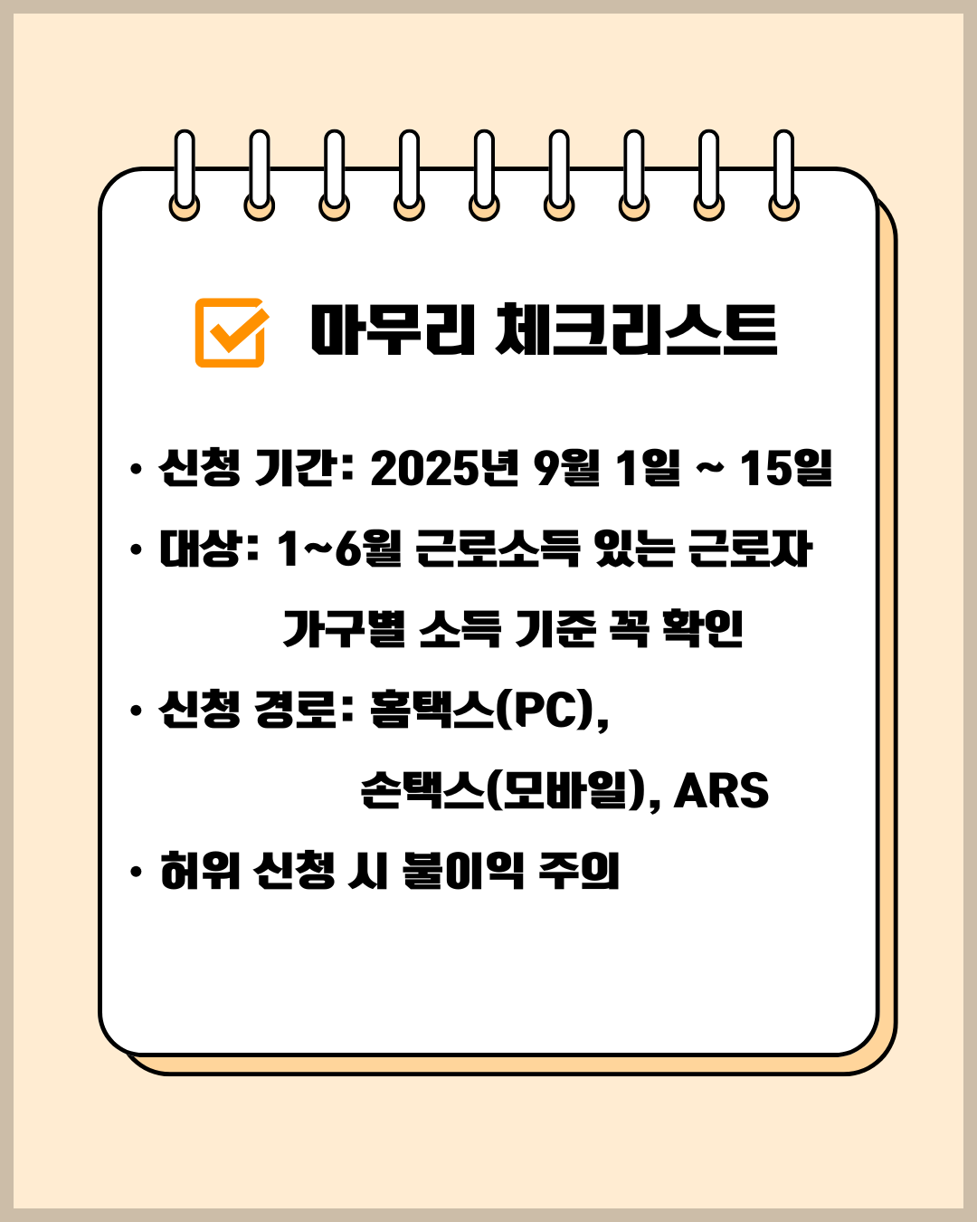 신청 후 심사를 거쳐 12월 말 지급이 이뤄지고, 하반기 소득은 2026년 6월에 정산됩니다.